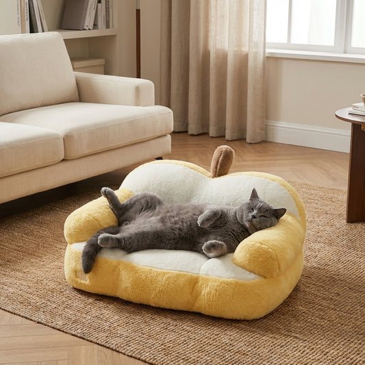 Apple-Shaped Cat Sofa Bed | Rabbit Fur Plush | Removable Cover