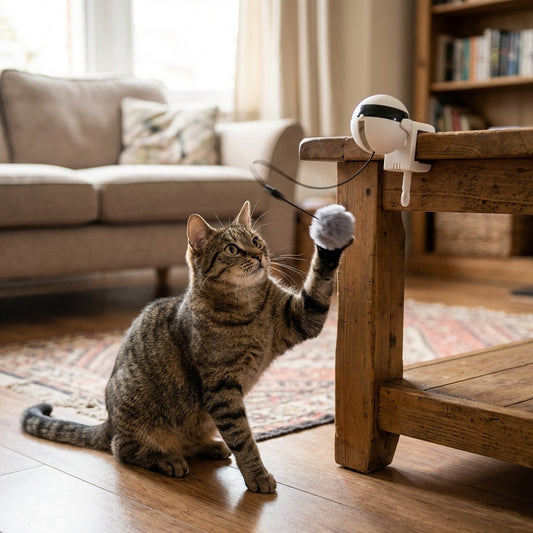 Automatic Lifting Cat Toy | Clamp-On String & Pompom | Hands-Free