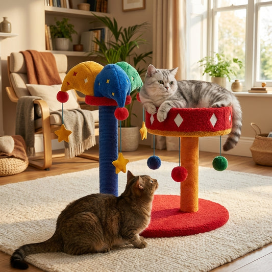 Circus-Themed Cat Tree & Bed Set | Teddy Fleece | 3 Styles