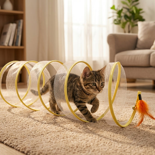 Collapsible Cat Tunnel Toy with Feather Attachments | Mesh & Steel Frame