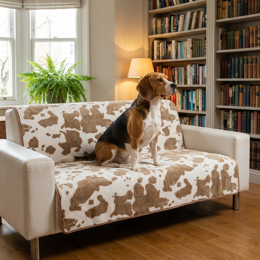 Cow Print Plush Pet Blanket | Non-Slip Backing | 2 Sizes
