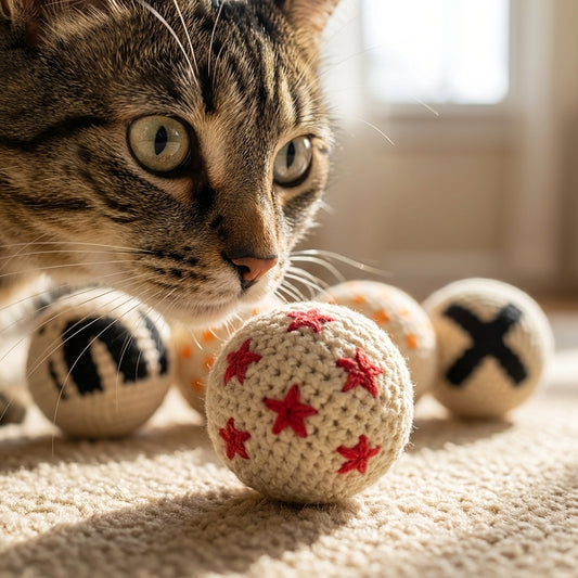 Crochet Yarn Balls for Cats | Hand-Knitted | Pack of 4