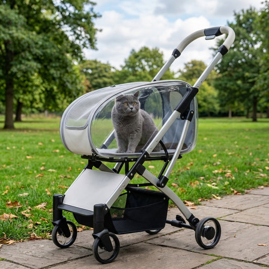 Detachable Cat Carrier Stroller | Clear Enclosure | Foldable