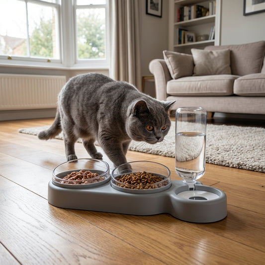 Dual Pet Feeding Bowl with Auto Water Dispenser