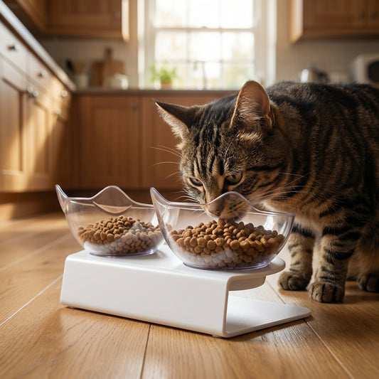 Elevated Double Cat Feeding Station | 15° Tilted Bowls | BPA-Free